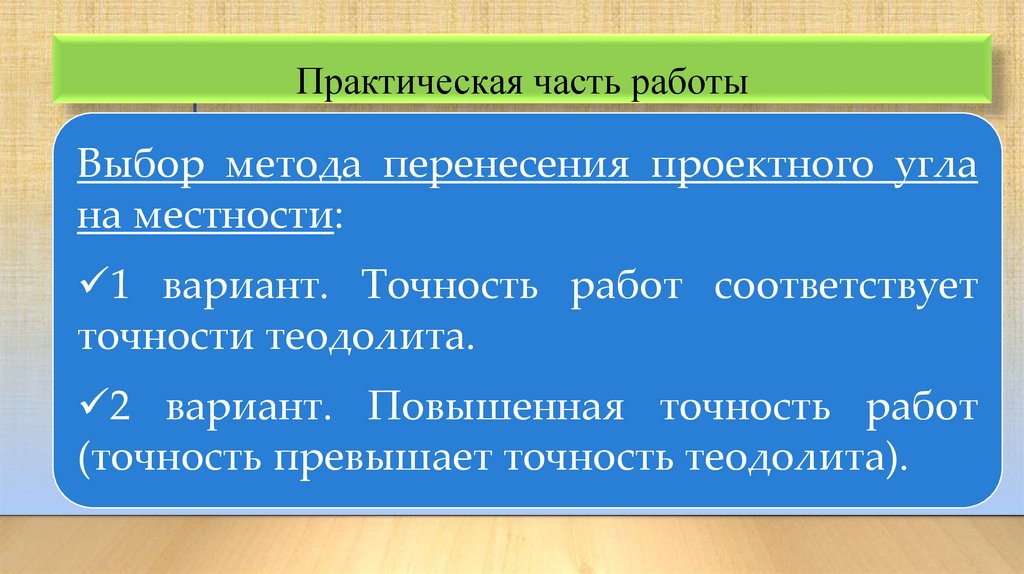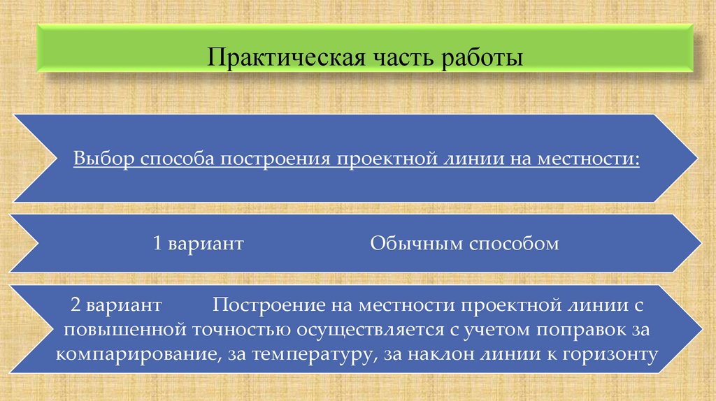 Практическая часть работыВыбор способа построения проектной линии на местности: