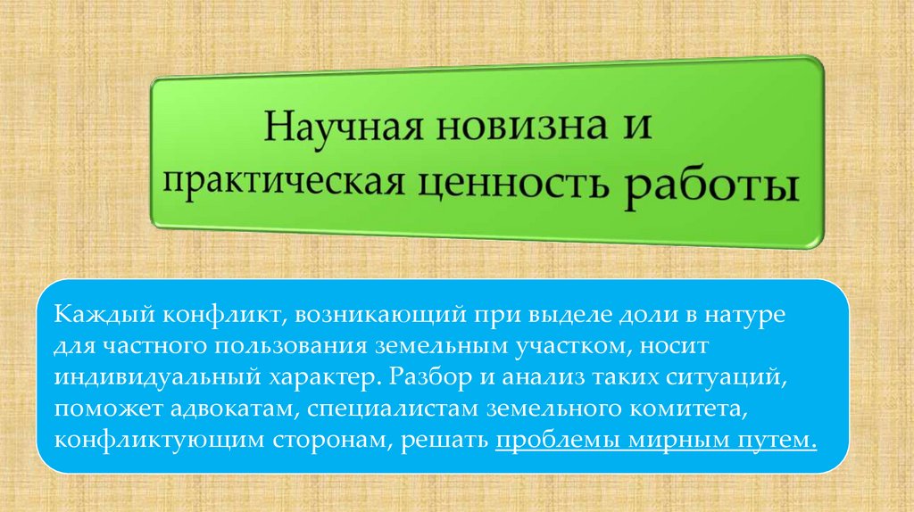 Каждый конфликт, возникающий при выделе доли в натуредля частного пользования земельным участком, носит