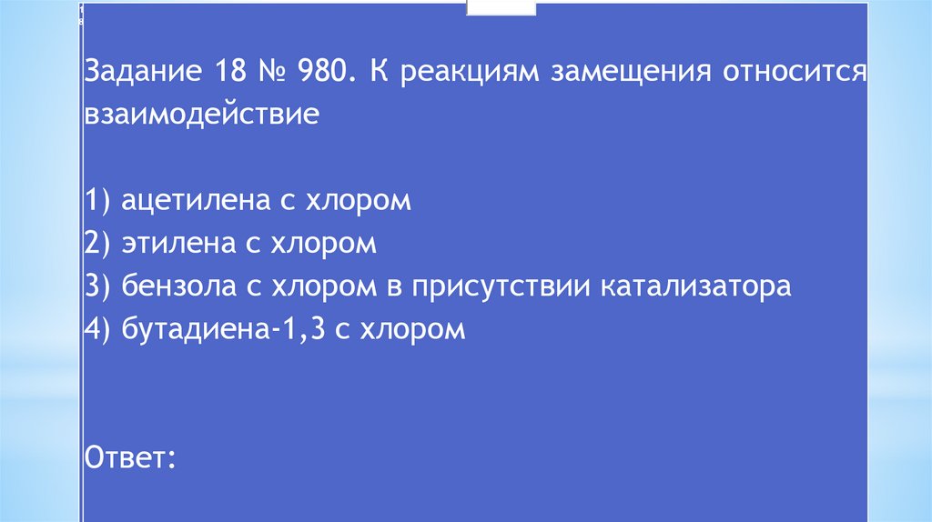 Задание 18 № 980. К реакциям замещения относится