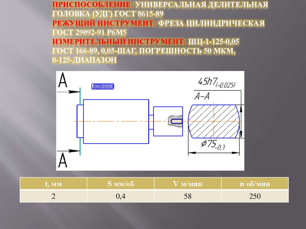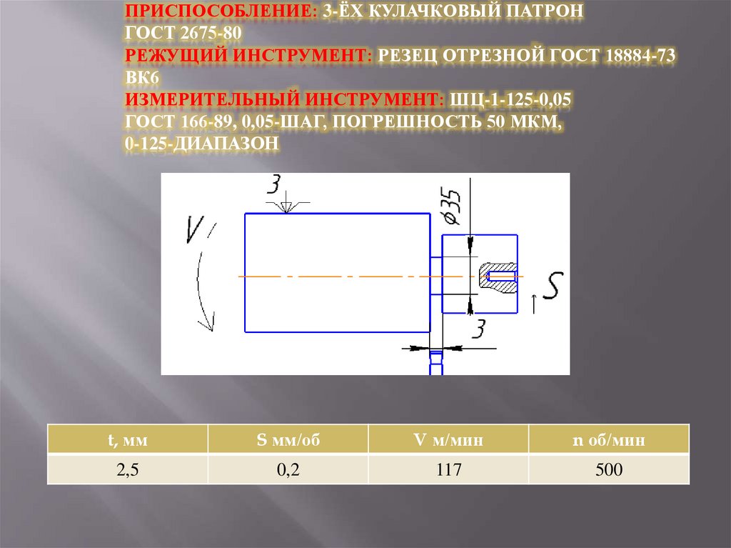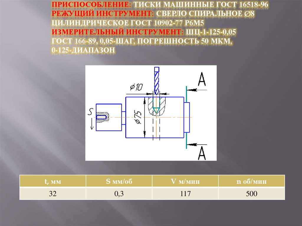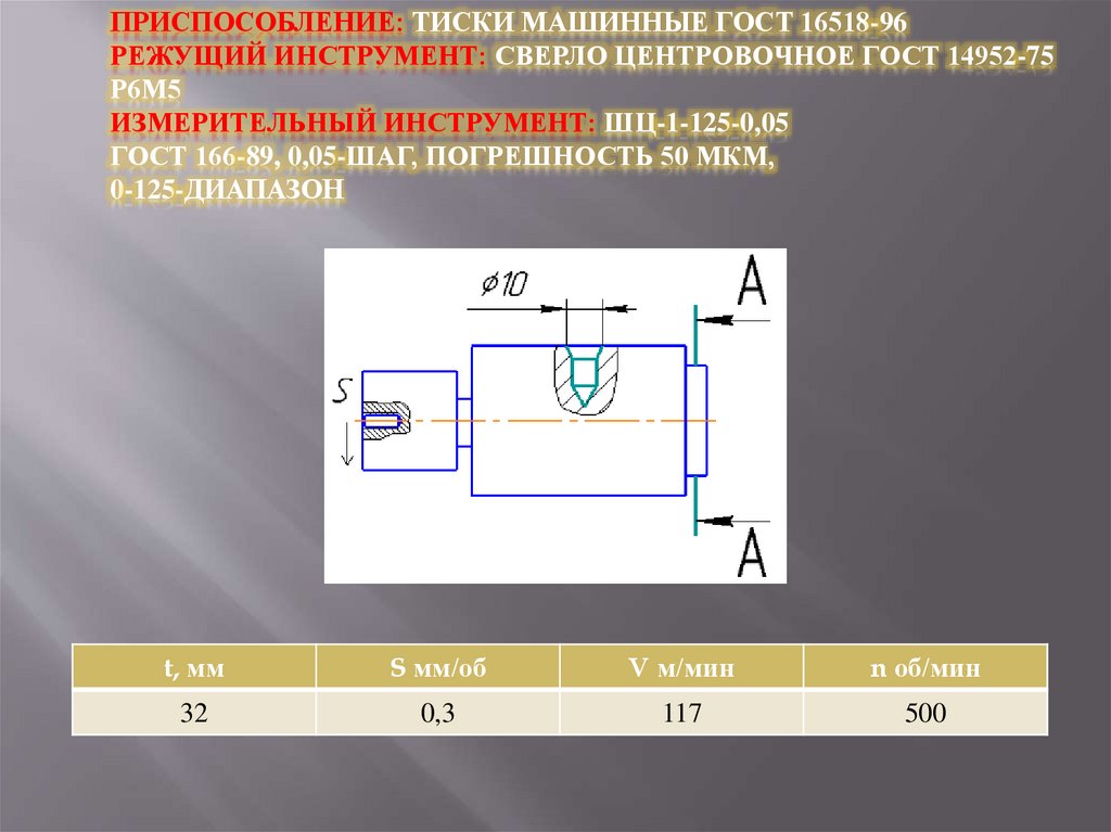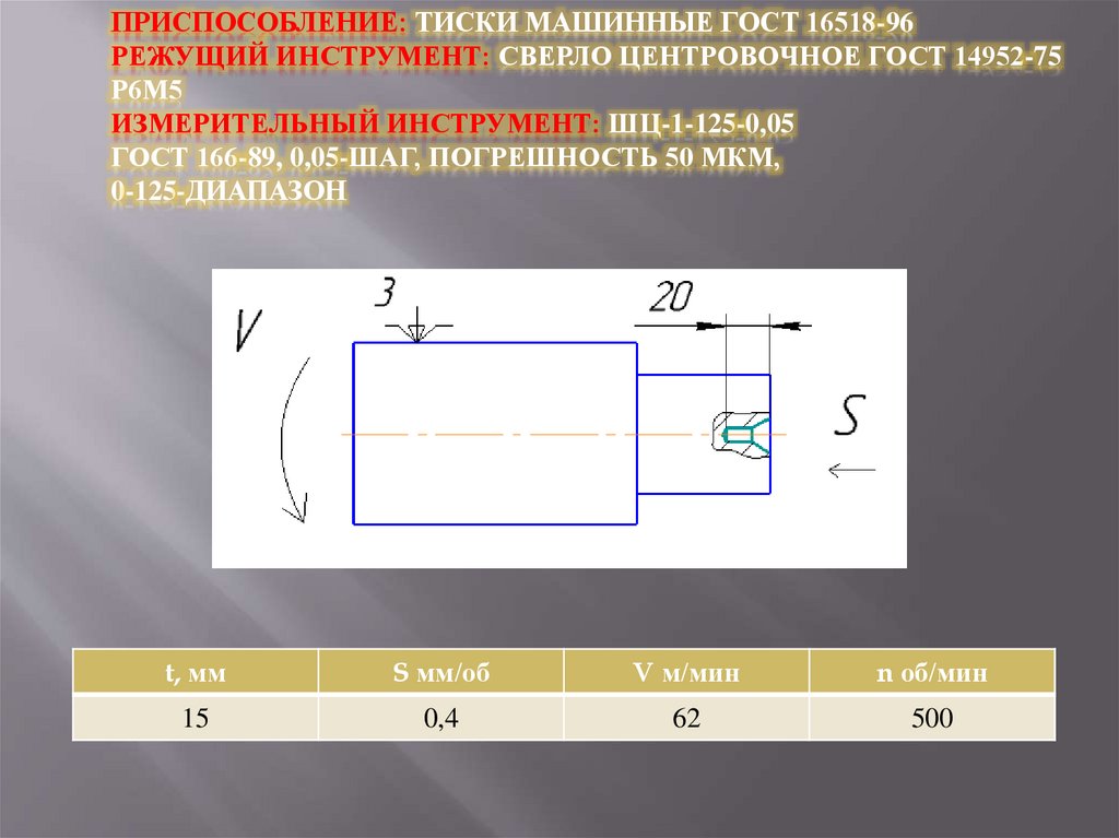ПРИСПОСОБЛЕНИЕ: ТИСКИ МАШИННЫЕ ГОСТ 16518-96РЕЖУЩИЙ ИНСТРУМЕНТ: СВЕРЛО ЦЕНТРОВОЧНОЕ ГОСТ 14952-75
