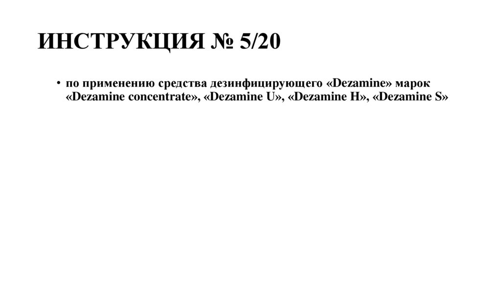 ИНСТРУКЦИЯ № 5/20• по применению средства дезинфицирующего «Dezamine» марок