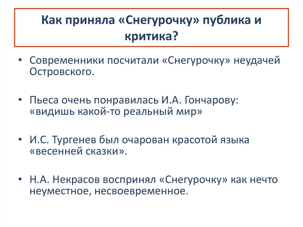 • Н.А. Некрасов воспринял «Снегурочку» как нечто