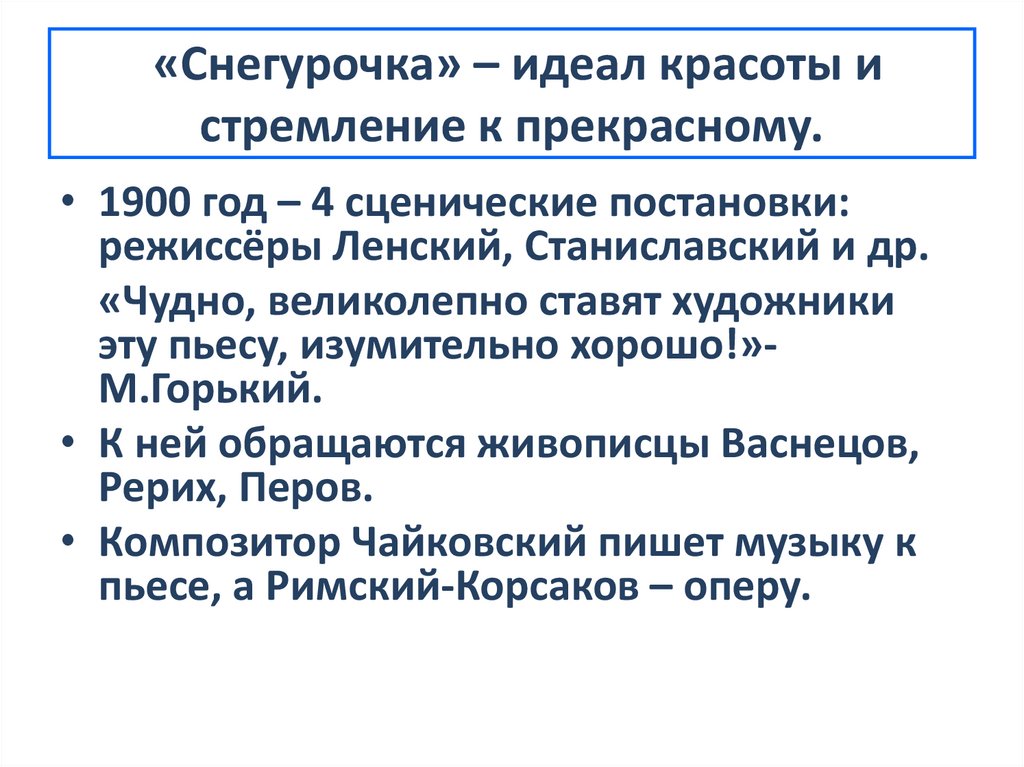 «Снегурочка» – идеал красоты истремление к прекрасному.