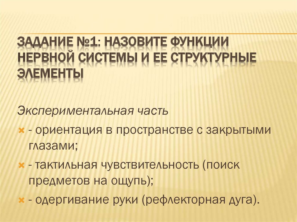 ЗАДАНИЕ №1: НАЗОВИТЕ ФУНКЦИИНЕРВНОЙ СИСТЕМЫ И ЕЕ СТРУКТУРНЫЕ