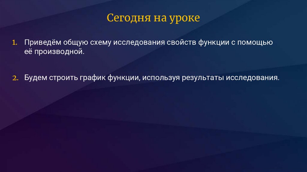 Сегодня на уроке1. Приведём общую схему исследования свойств функции с помощью