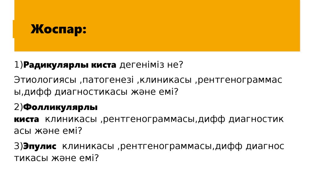 Жоспар:1)Радикулярлы киста дегеніміз не?