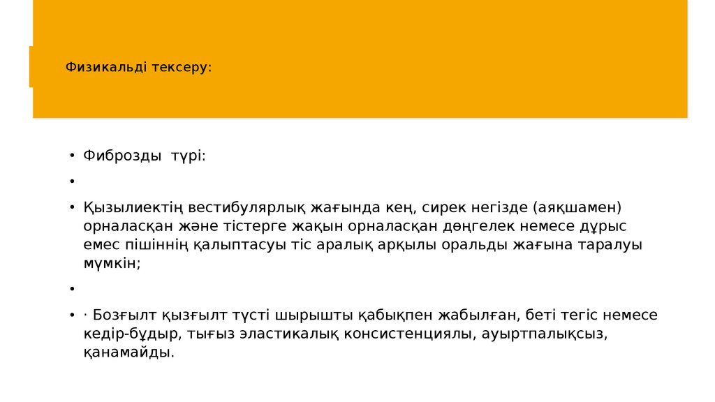 Физикальді тексеру:Фиброзды түрі: