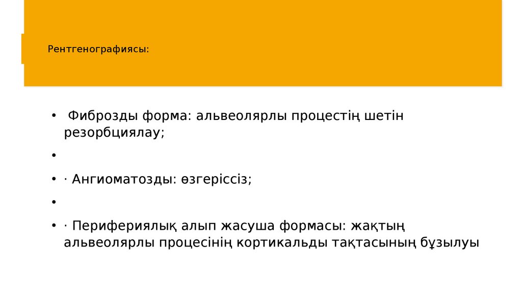 Рентгенографиясы:Фиброзды форма: альвеолярлы процестің шетін