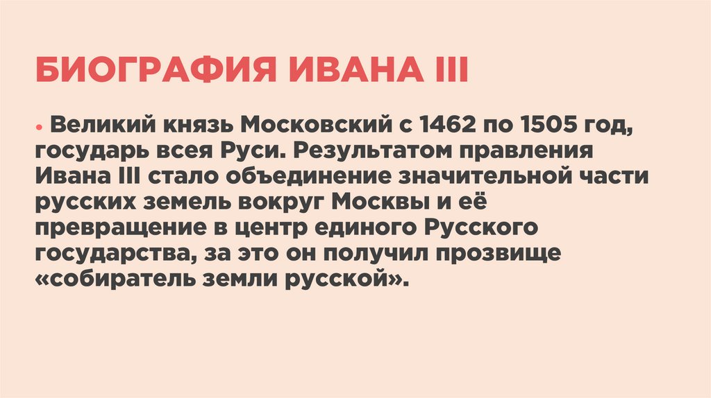 БИОГРАФИЯ ИВАНА III• Великий князь Московский с 1462 по 1505 год,