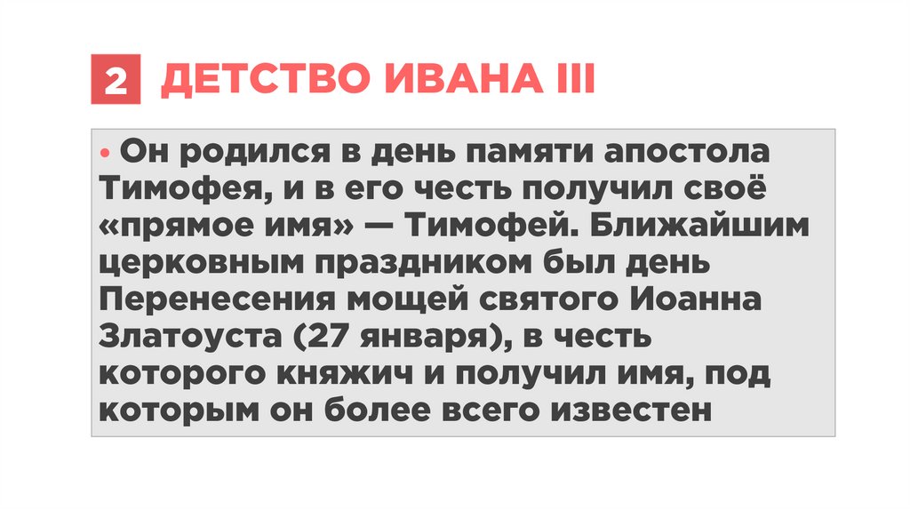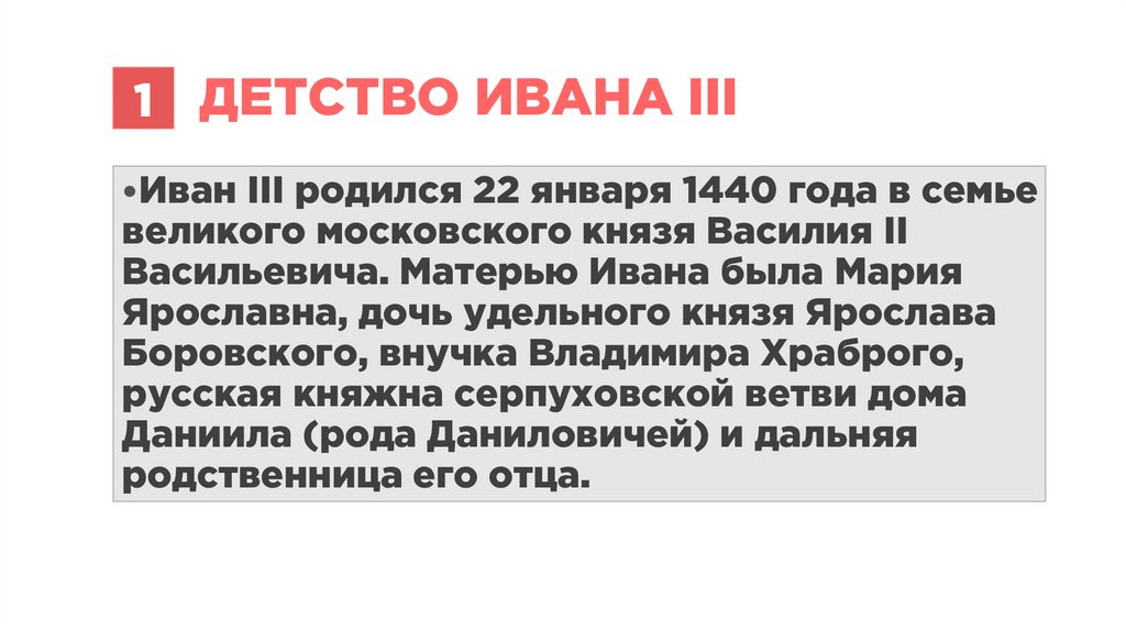 1 ДЕТСТВО ИВАНА III•Иван III родился 22 января 1440 года в семье
