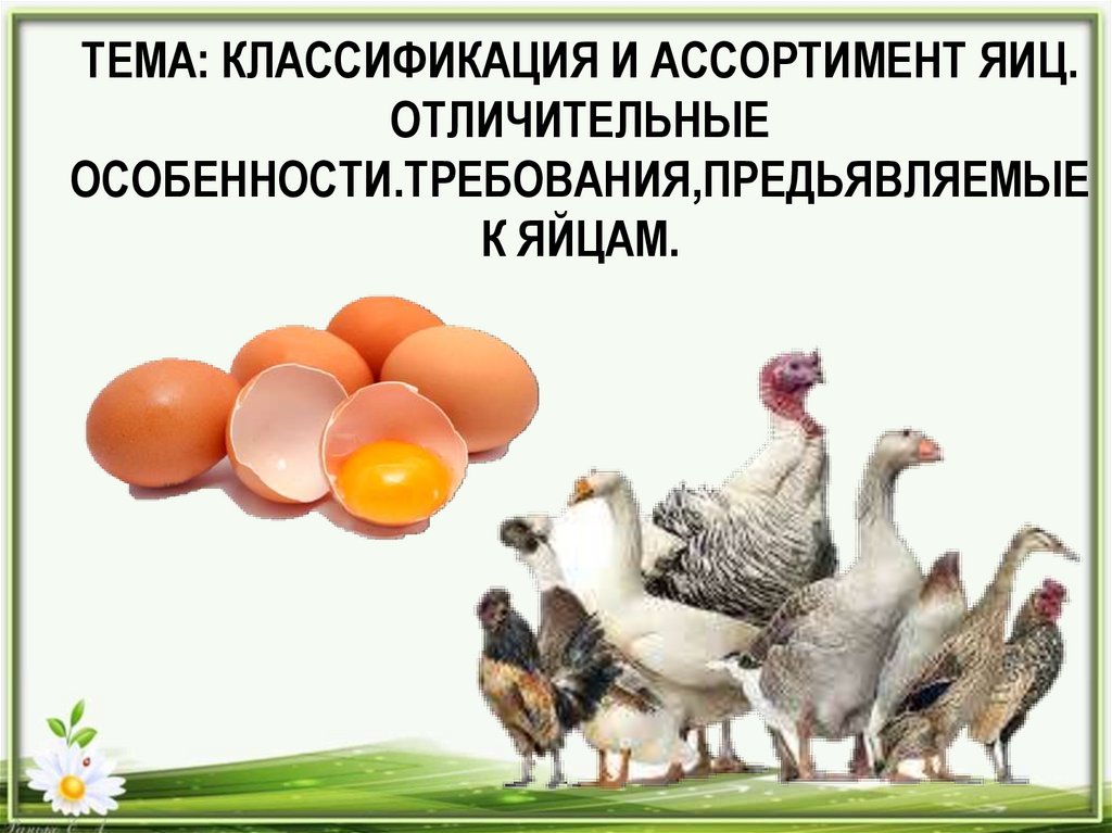 ТЕМА: КЛАССИФИКАЦИЯ И АССОРТИМЕНТ ЯИЦ.ОТЛИЧИТЕЛЬНЫЕ