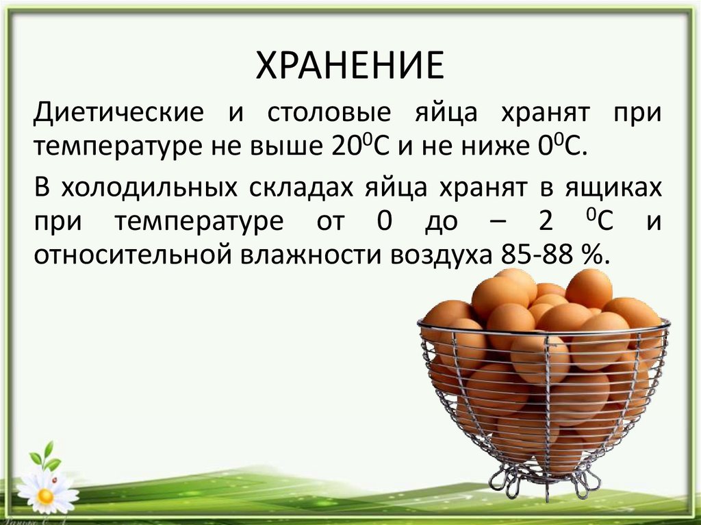 ХРАНЕНИЕДиетические и столовые яйца хранят при