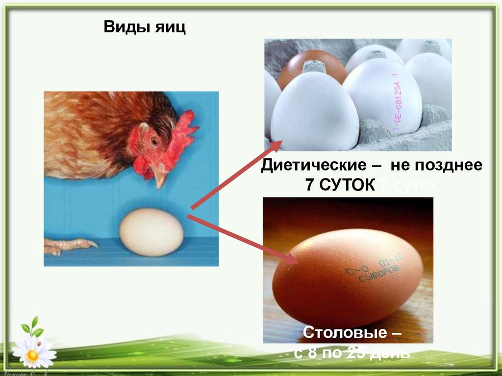 Виды яицДиетические – не позднее