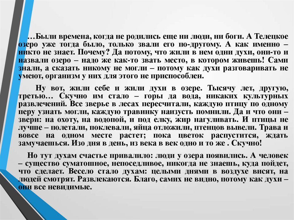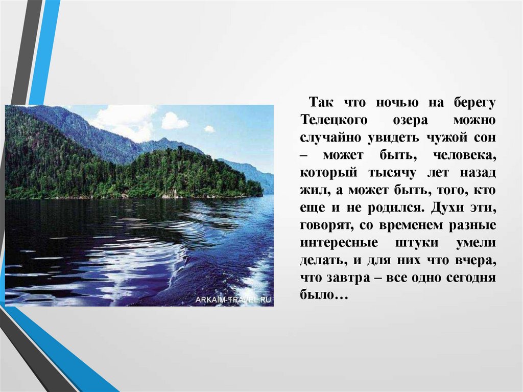 …Были времена, когда не родились еще ни люди, ни боги. А Телецкоеозеро уже тогда было, только звали его по-другому. А как именно –