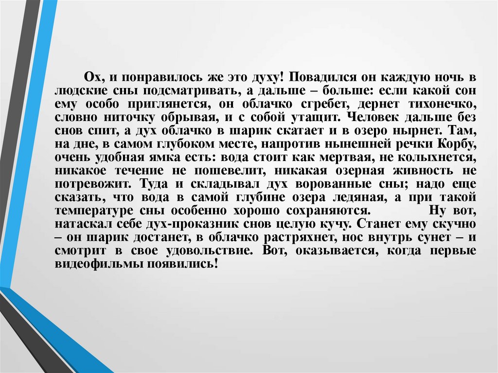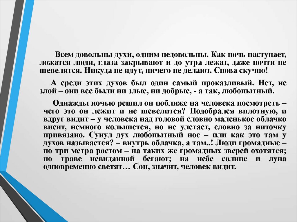 Ох, и понравилось же это духу! Повадился он каждую ночь влюдские сны подсматривать, а дальше – больше: если какой сон