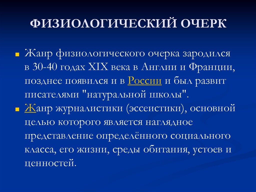 Жанр физиологического очерка зародился