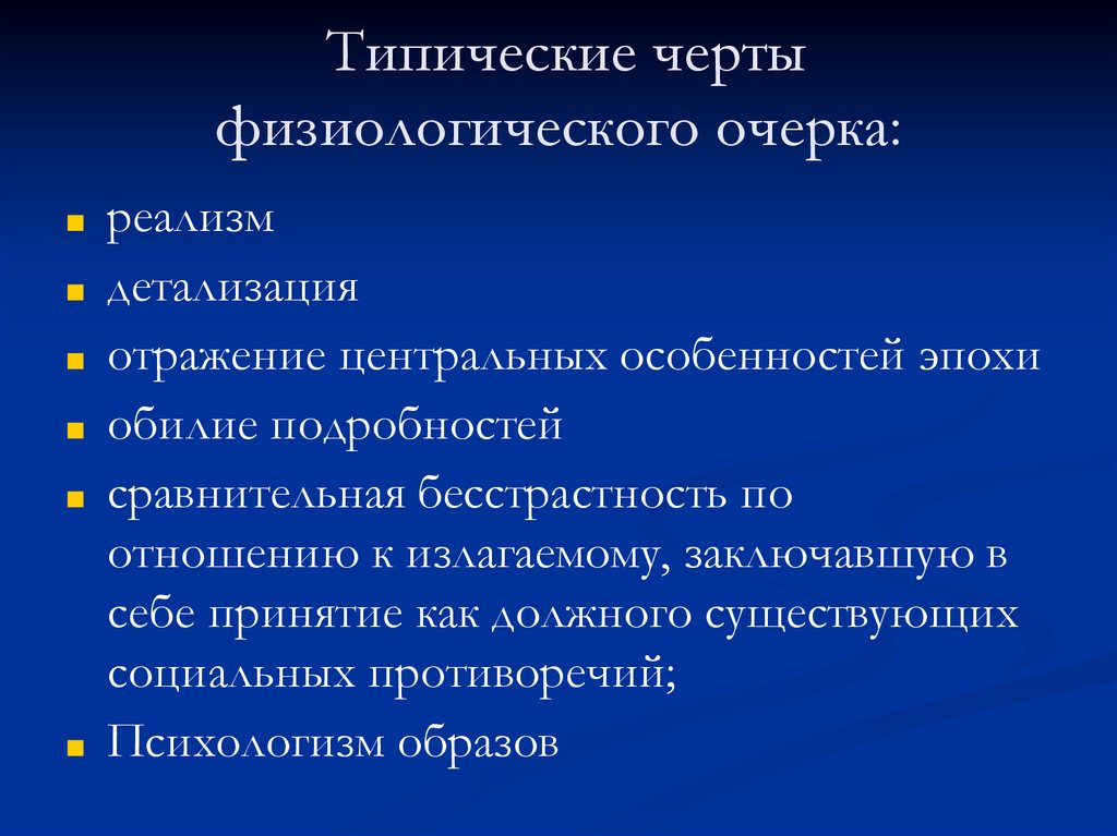 Типические чертыфизиологического очерка:
