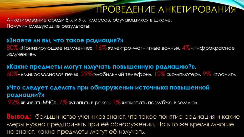 Вывод: большинство учеников знают, что такое понятие радиация и какие