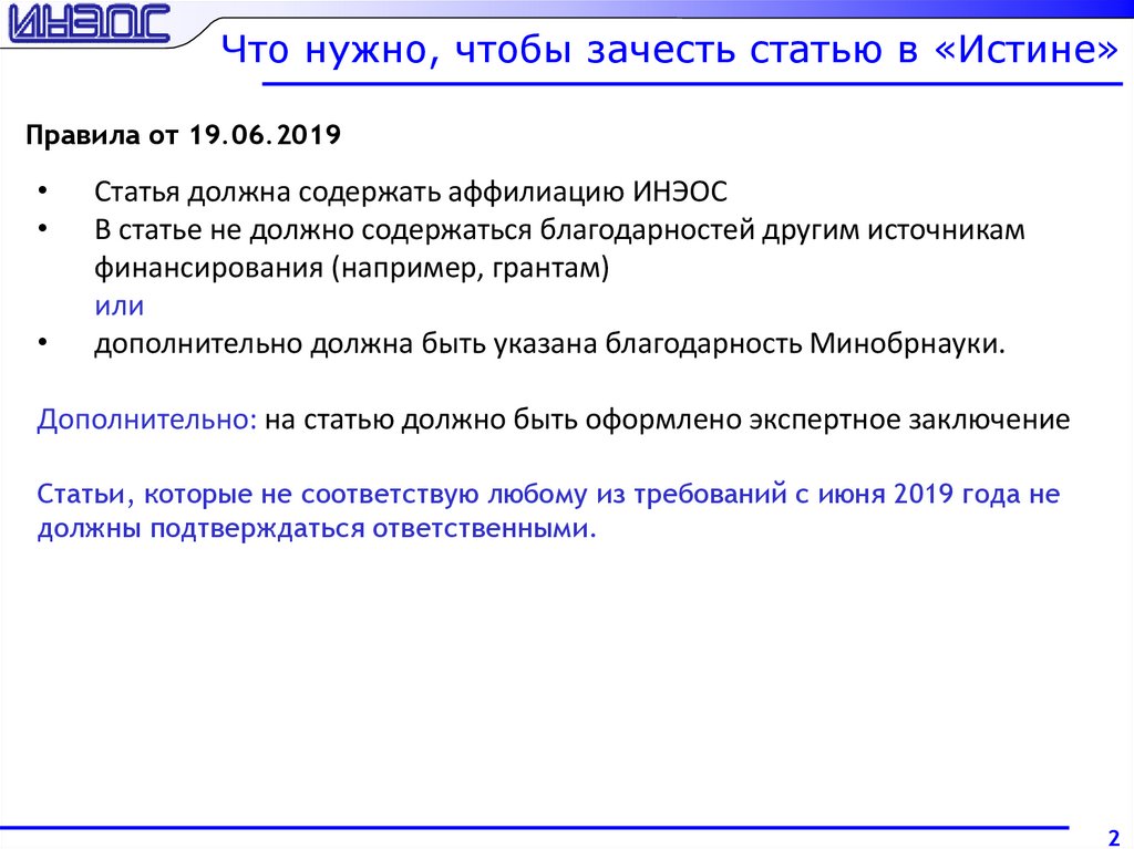 Что нужно, чтобы зачесть статью в «Истине»Правила от 19.06.2019
