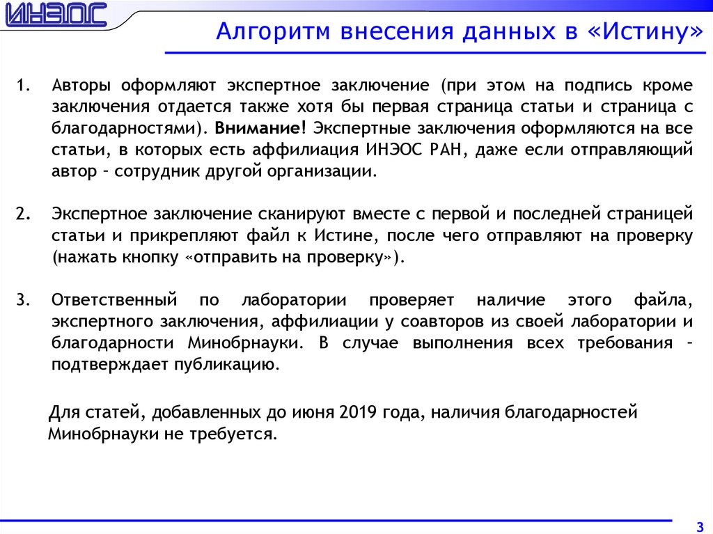 Ученый совет ИНЭОС. Порядок учёта публикаций сотрудников в системе «Истина». Анализ статей