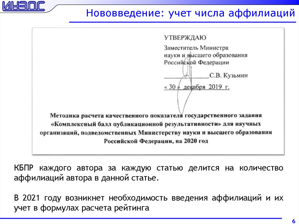 Нововведение: учет числа аффилиацийКБПР каждого автора за каждую статью делится на количество