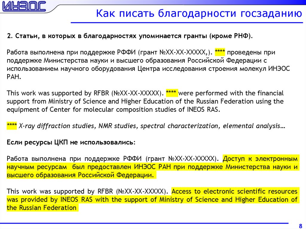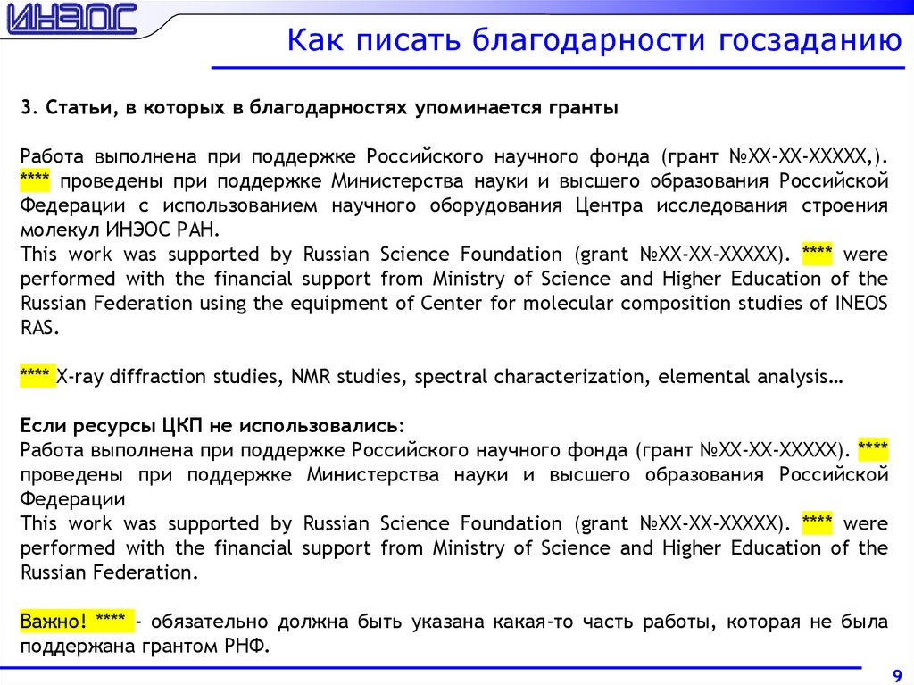 Как писать благодарности госзаданию3. Статьи, в которых в благодарностях упоминается гранты