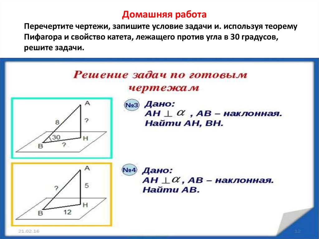 Перпендикуляр и наклонная к плоскости. Решение задач