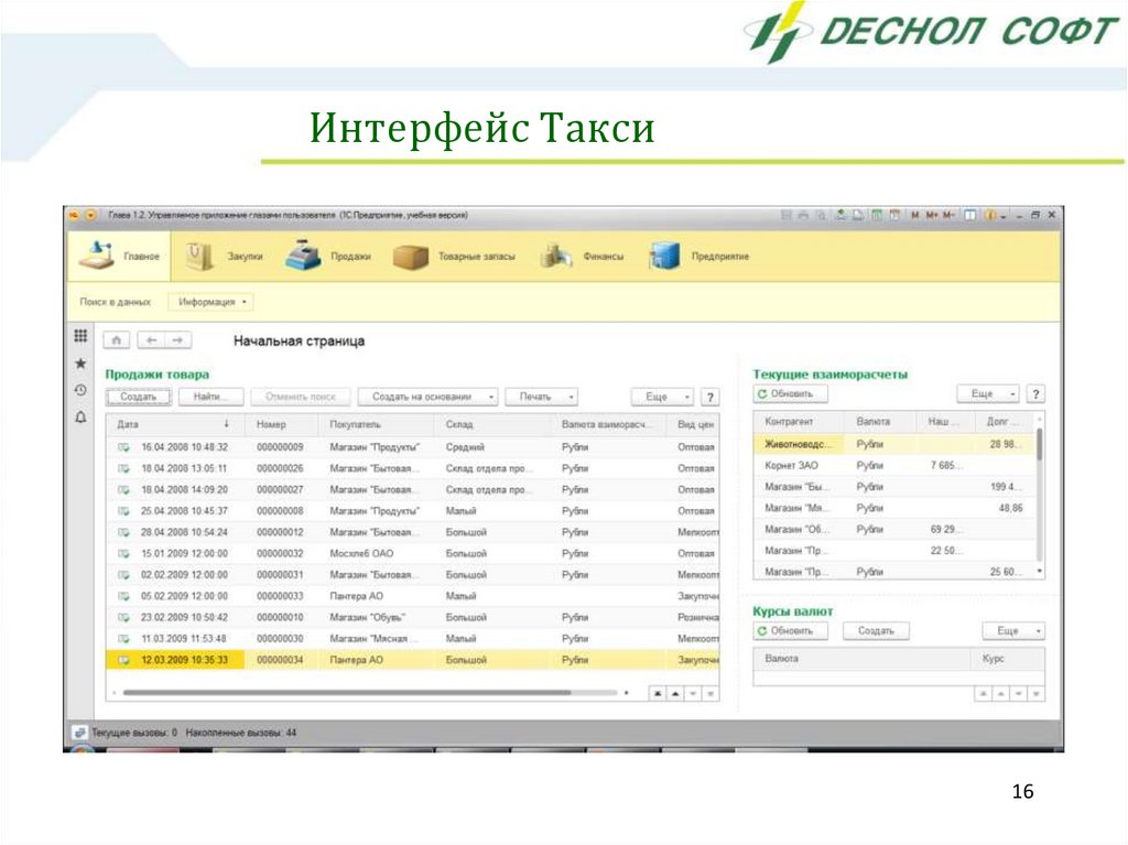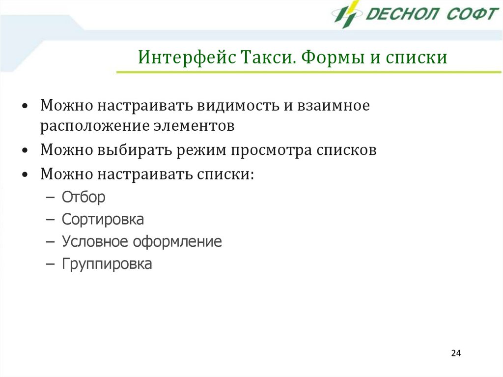 Интерфейс Такси. Формы и списки• Можно настраивать видимость и взаимное