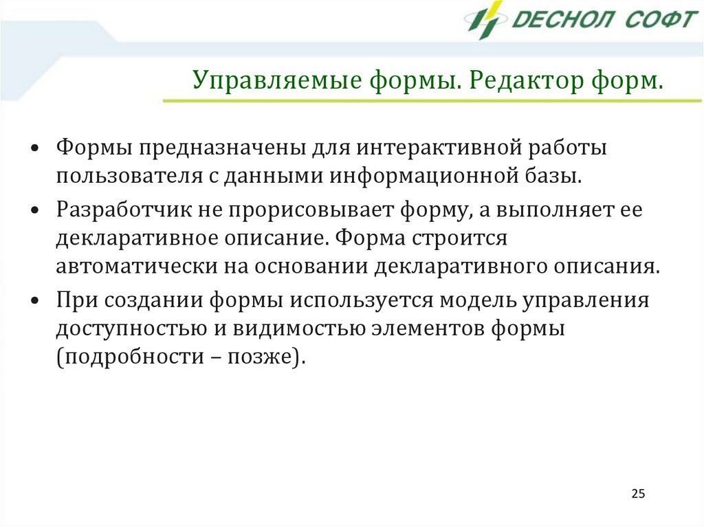 Управляемые формы. Редактор форм.• Формы предназначены для интерактивной работы