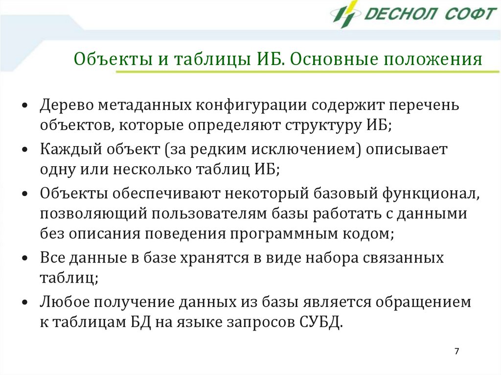 Объекты и таблицы ИБ. Основные положения• Дерево метаданных конфигурации содержит перечень