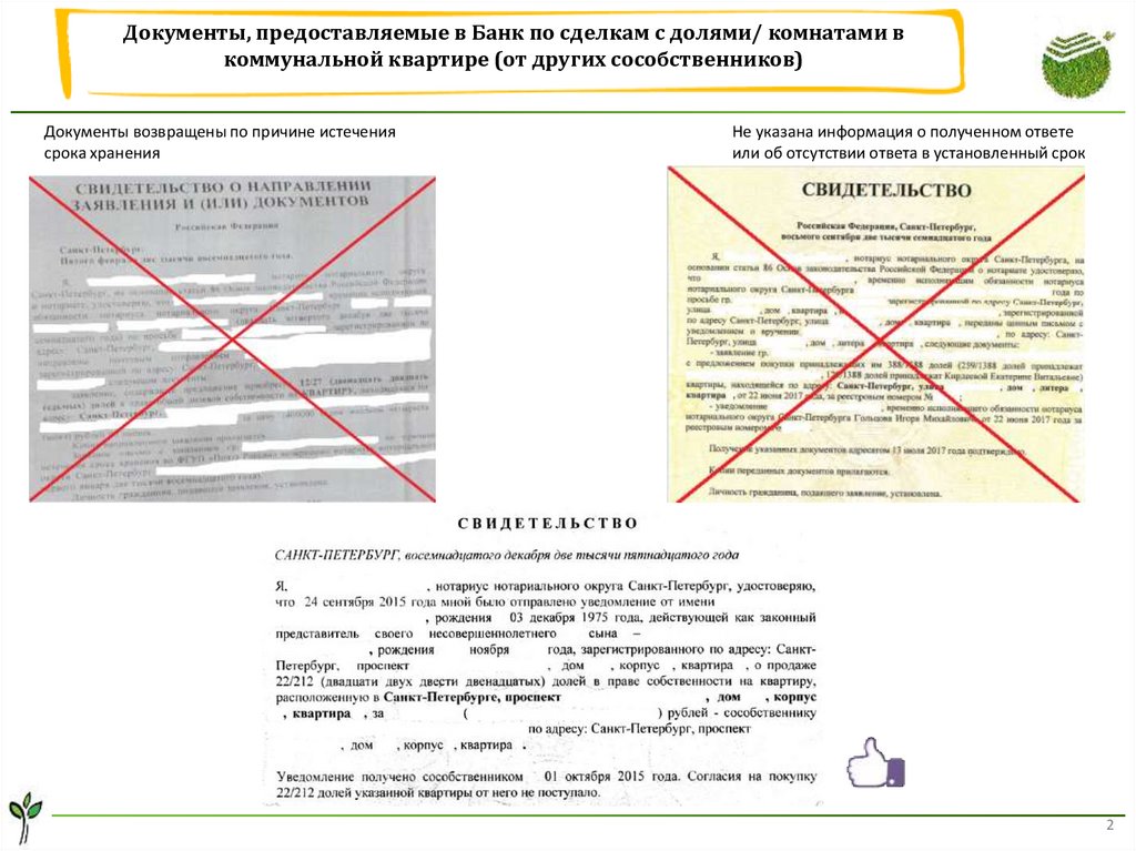 Документы, предоставляемые в Банк по сделкам с долями/ комнатами вкоммунальной квартире (от других сособственников)