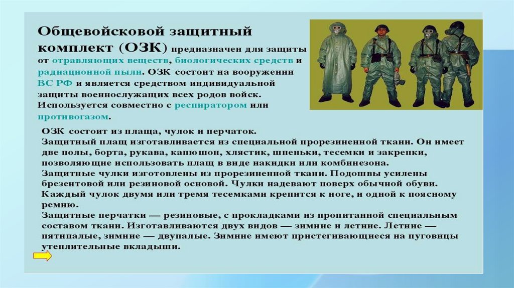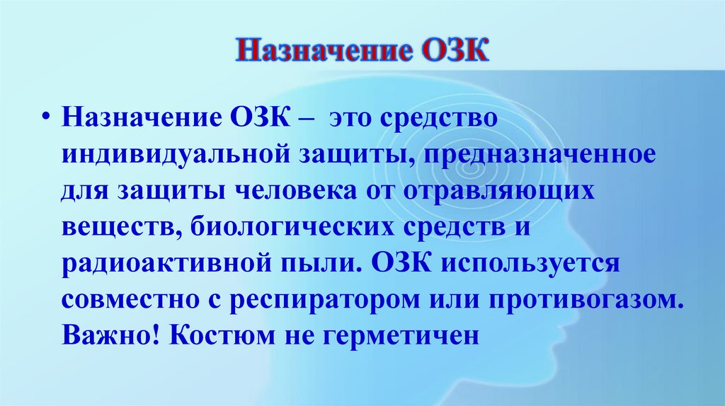 • Назначение ОЗК – это средствоиндивидуальной защиты, предназначенное