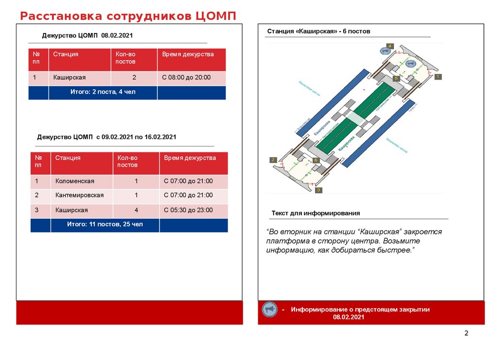 Расстановка сотрудников ЦОМПСтанция «Каширская» - 6 постов