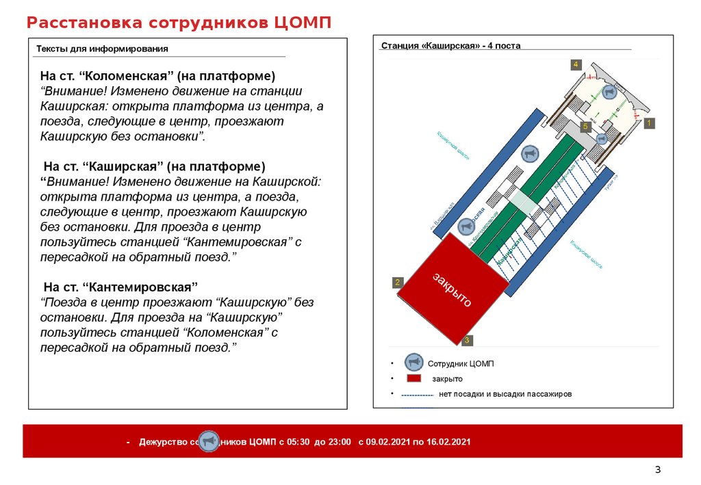 Расстановка сотрудников ЦОМП станции «Каширская» Замоскворецкой линии
