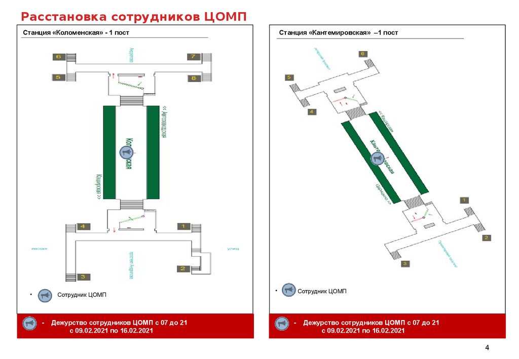 Расстановка сотрудников ЦОМПСтанция «Коломенская» - 1 пост