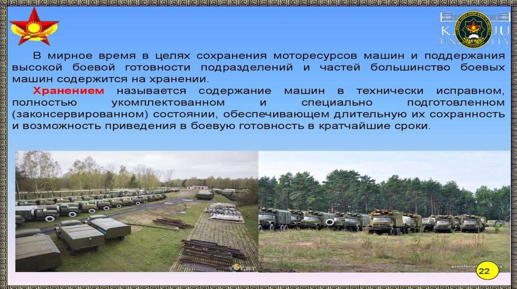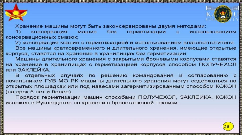 способы хранения техники и вооружения. Периодичность, порядок и