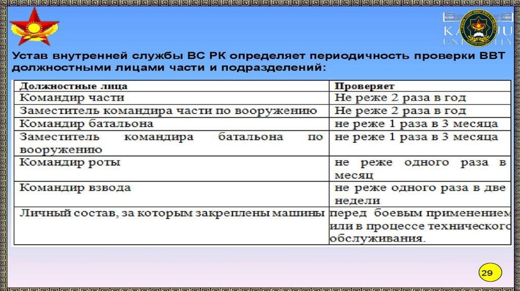 последовательность проверки технического состояния вооружения и
