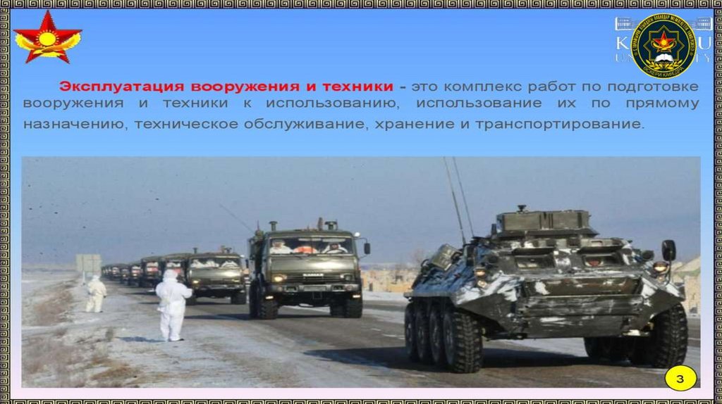 3. Учебные вопросы: 1. Определение понятия эксплуатации техники и вооружения. Порядок эксплуатации техники в мирное время.