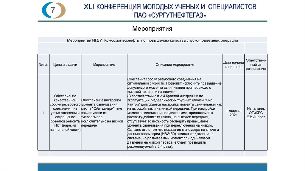 ХLI КОНФЕРЕНЦИЯ МОЛОДЫХ УЧЕНЫХ И СПЕЦИАЛИСТОВПАО «СУРГУТНЕФТЕГАЗ»