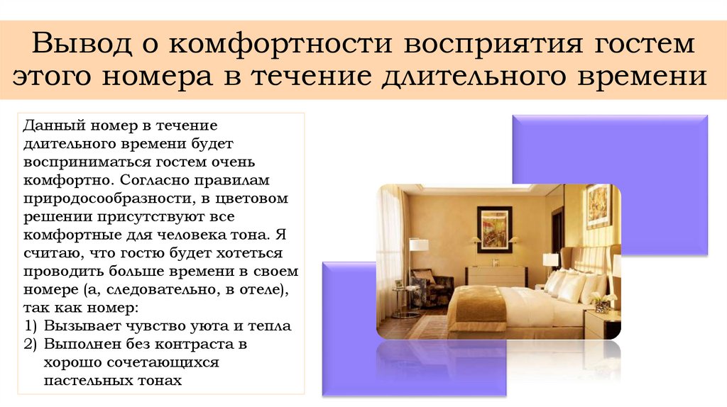Вывод о комфортности восприятия гостемэтого номера в течение длительного времени