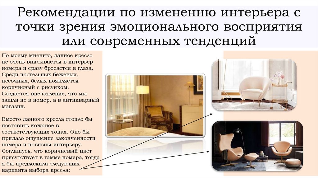 Рекомендации по изменению интерьера сточки зрения эмоционального восприятия