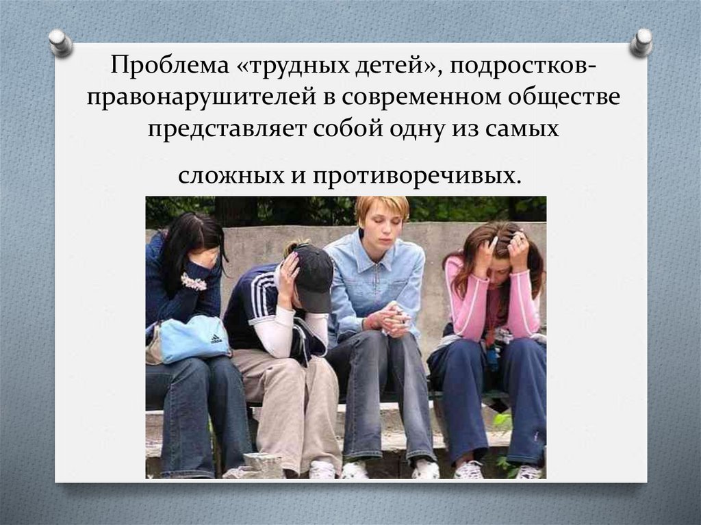 Проблема «трудных детей», подростковправонарушителей в современном обществепредставляет собой одну из самых