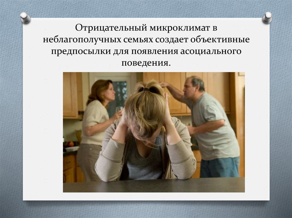 Отрицательный микроклимат внеблагополучных семьях создает объективные