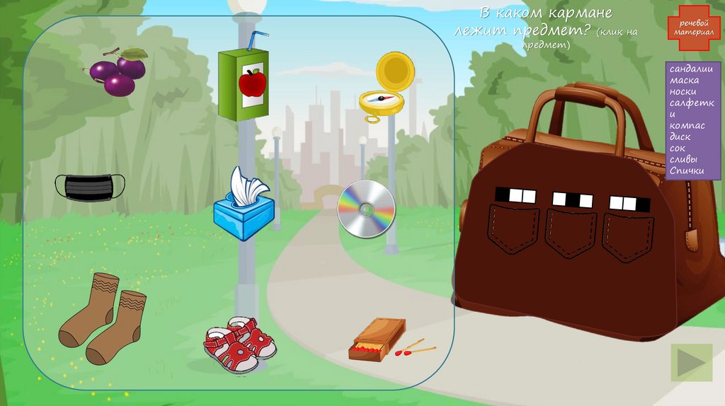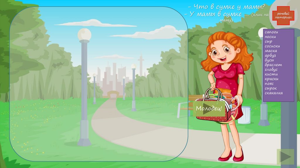 - Что в сумке у мамы?- У мамы в сумке … (клик на