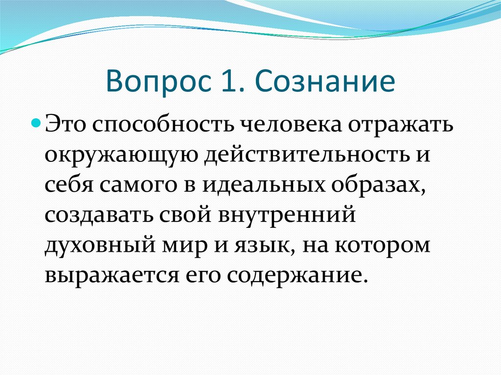 Вопрос 1. СознаниеЭто способность человека отражать