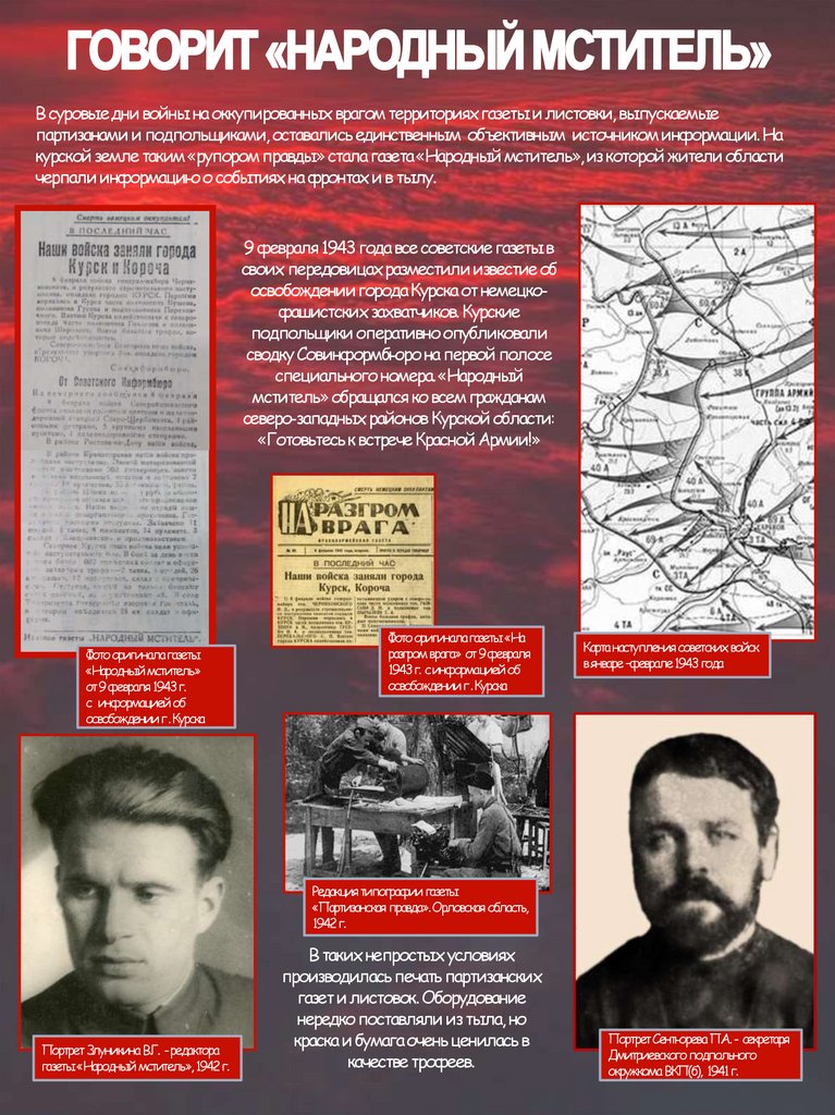 В суровые дни войны на оккупированных врагом территориях газеты и листовки, выпускаемыепартизанами и подпольщиками, оставались единственным объективным источником информации. На