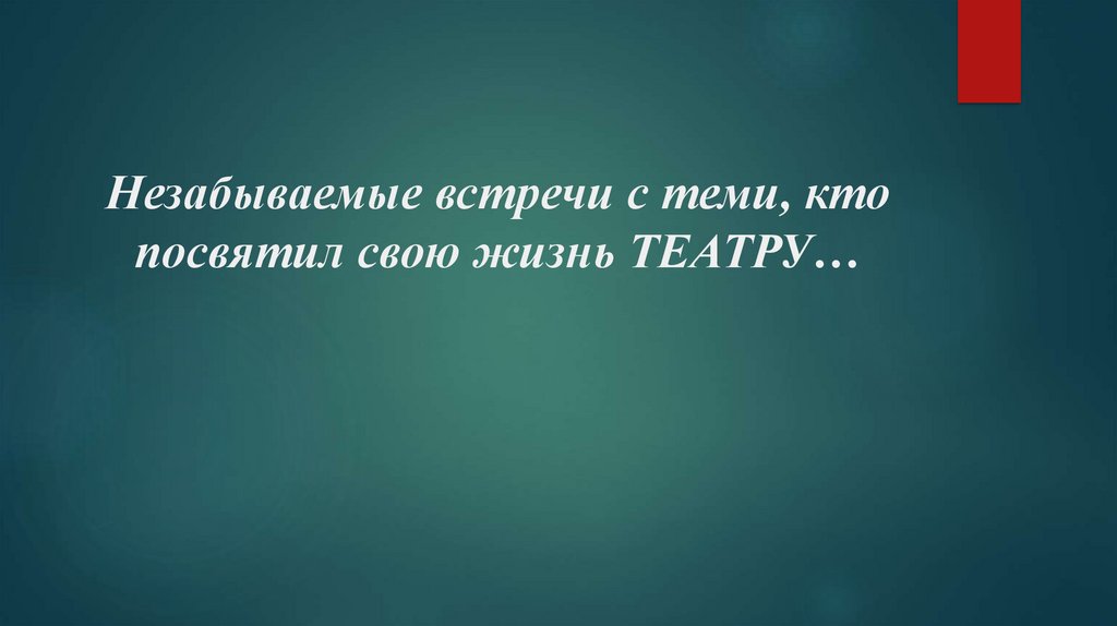 Незабываемые встречи с теми, ктопосвятил свою жизнь ТЕАТРУ…