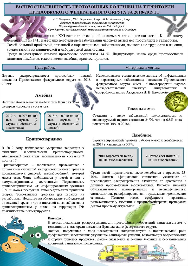 РАСПРОСТРАНЕННОСТЬ ПРОТОЗОЙНЫХ БОЛЕЗНЕЙ НА ТЕРРИТОРИИПРИВОЛЖСКОГО ФЕДЕРАЛЬНОГО ОКРУГА ЗА 2018-2019 ГГ.