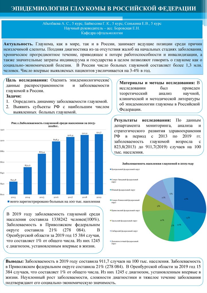 ЭПИДЕМИОЛОГИЯ ГЛАУКОМЫ В РОССИЙСКОЙ ФЕДЕРАЦИИАбызбаева А. С., 5 курс, Байкосова Г. К., 5 курс, Сенькина Е.В., 5 курс