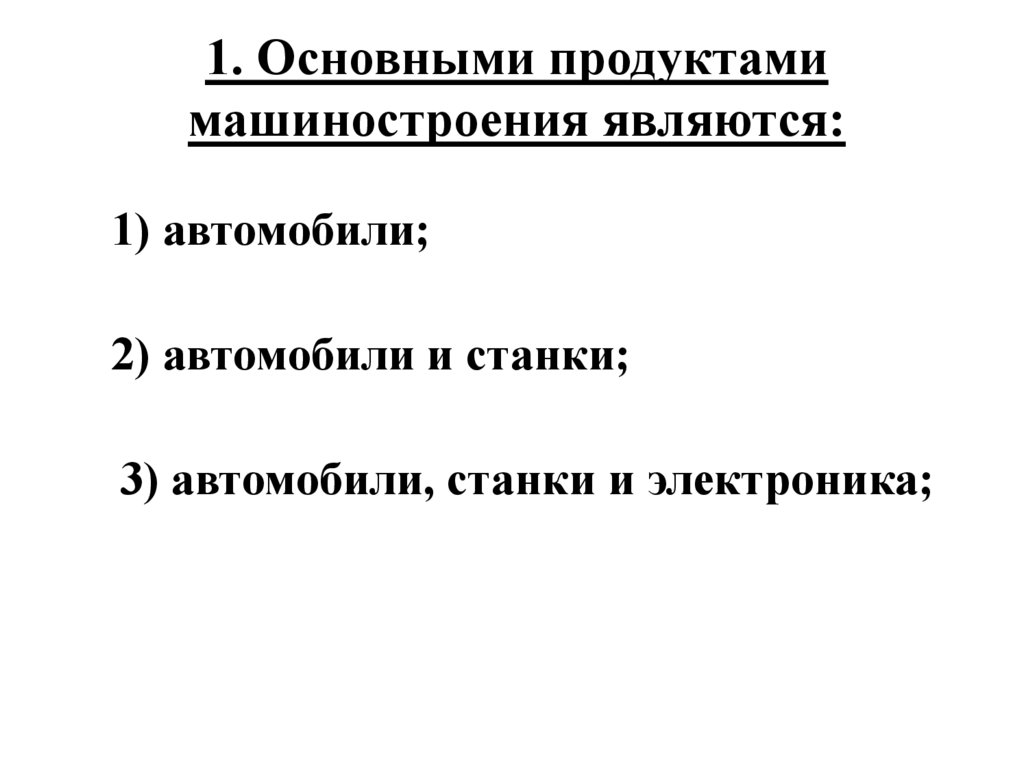 1. Основными продуктамимашиностроения являются: